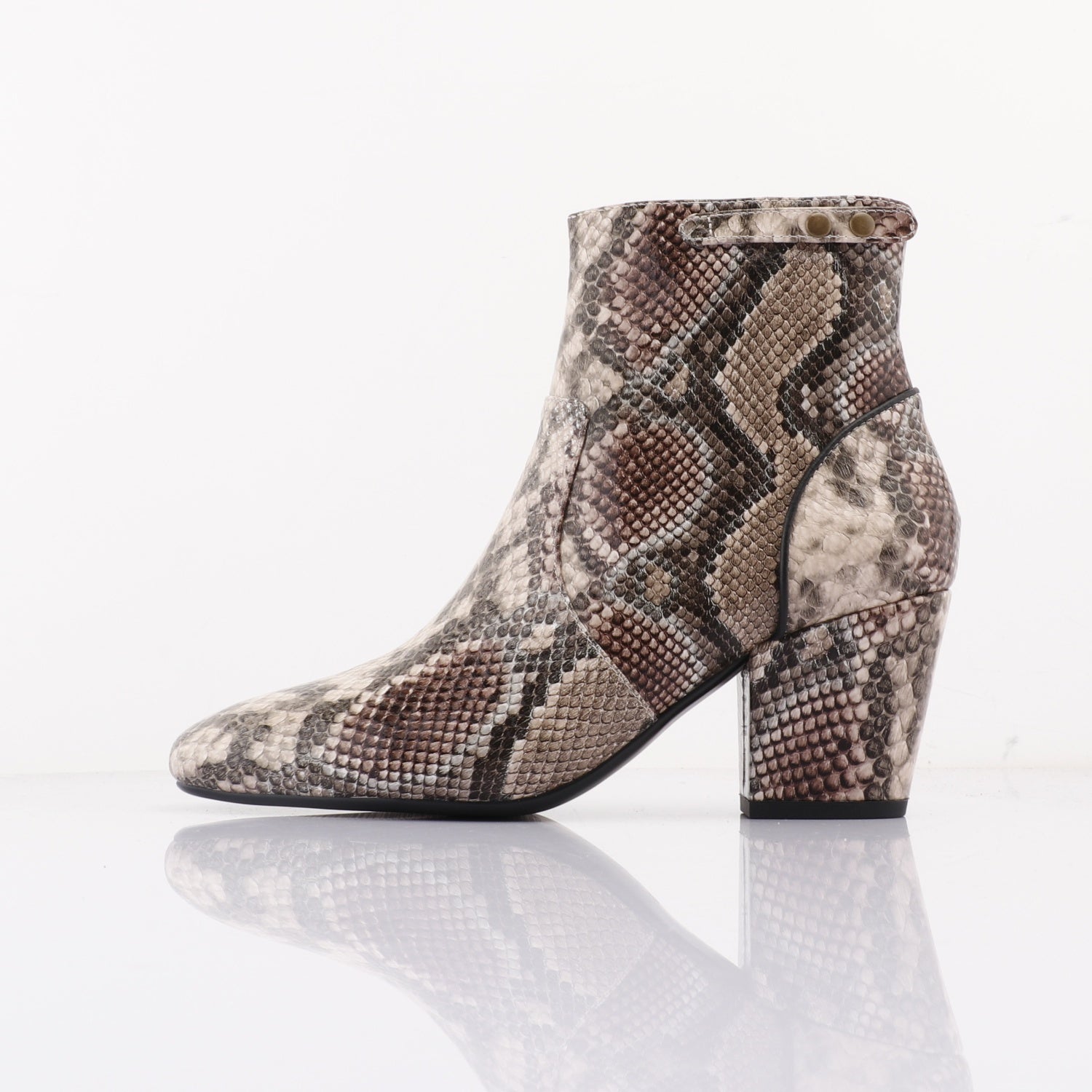 The Cartwright boot in Snake embossed leather, is the Wyn's sassy and cozy little cousin. With a 6.5 cm heel height and a bit of a more open toe bed. Contrast piping on the heel. Lined in memory foam as always. Step out in style.