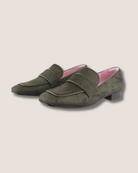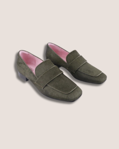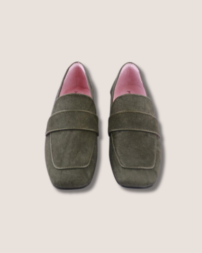 This calf hair loafer piped in grossgrain with our signature Square toe, is lined with pale pink kid leather.