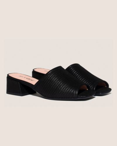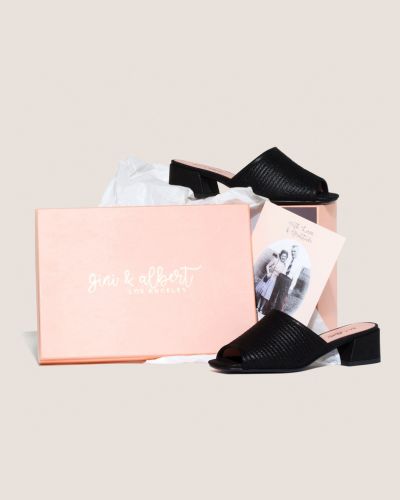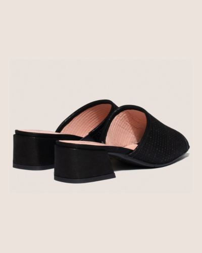 Leather exterior with a slight shimmer. Pale pink kid leather insole and interior. Signature square toe. Versatile slide sandal raised on a walkable block heel compliments a variety of outfits. Comfort designed memory foam insole at the ball of the foot, arch, and heel. Imported materials.